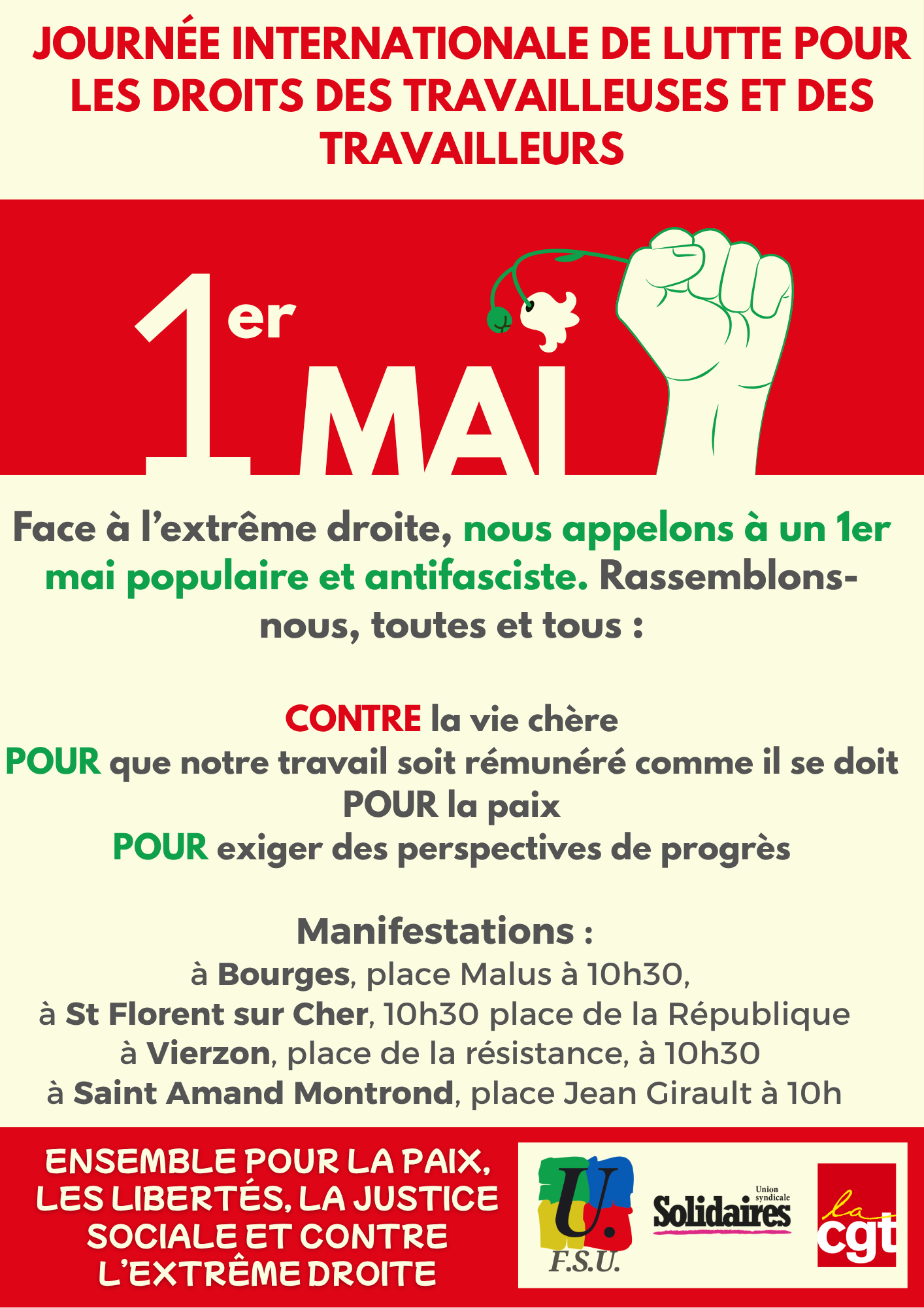 Alors, mobilisons-nous toutes et tous, massivement, dans le Cher. Rendez-vous :